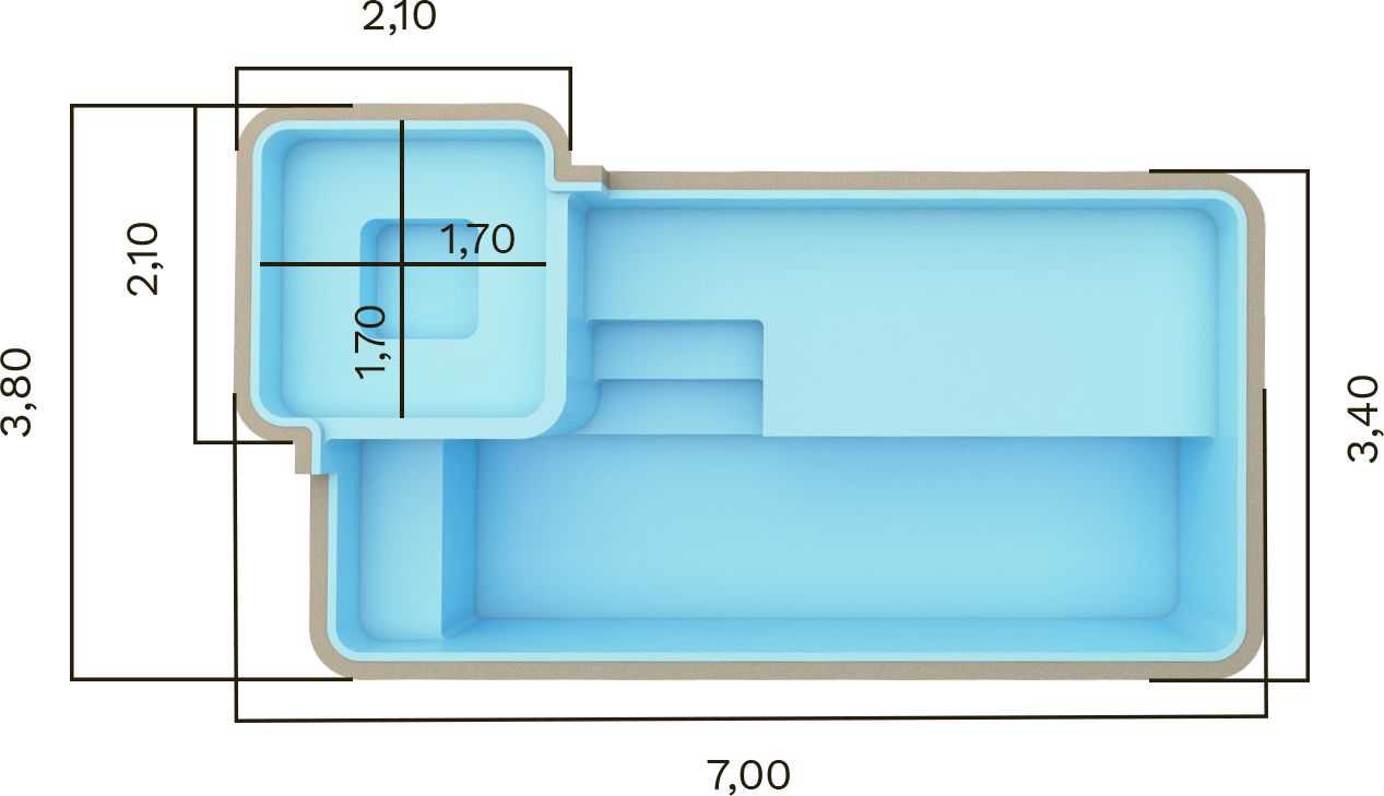 | KS 700 | 7,00 x 3,80 x 1,40m | 18.300 litros | Praia Spa |