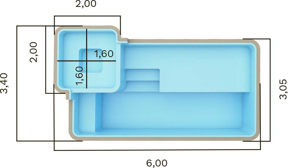 | KS 600 | 6,00 x 3,40 x 1,40m | 13.500 litros | Praia Spa |