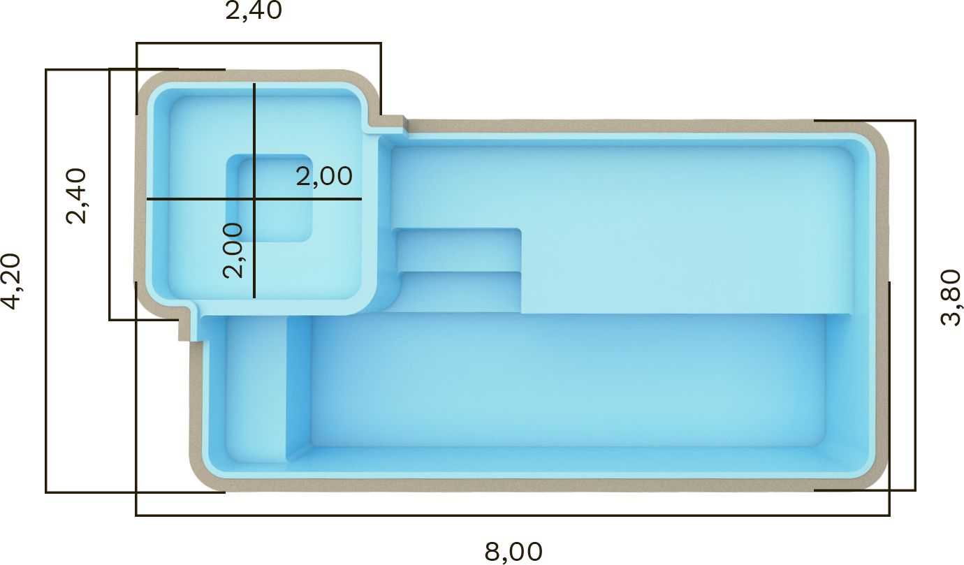 | KS 800 | 8,00 x 4,20 x 1,40m | 23.200 litros | Praia Spa |